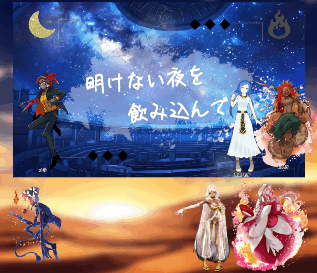 立ち絵の並び今見ると魔人PC以外オレンジ×白で統一されていてアウェイ感がすごい。