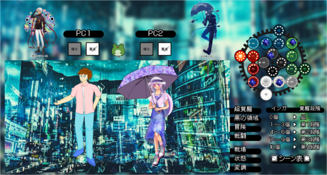 立ち絵の並び今見ると魔人PC以外オレンジ×白で統一されていてアウェイ感がすごい。